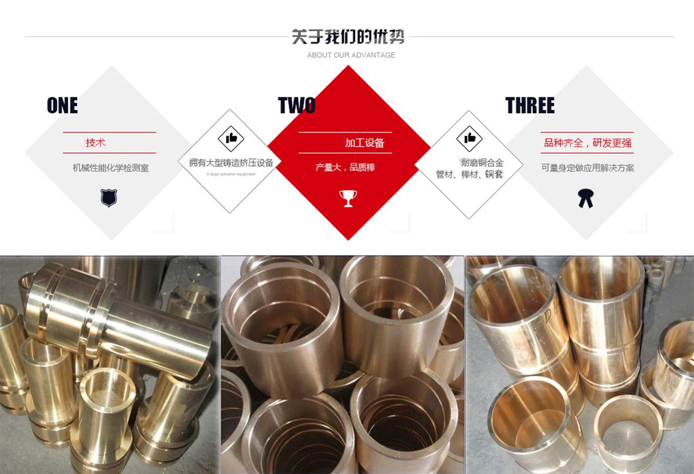 河間市銅套制品有限公司的生產(chǎn)設(shè)備精良,擁有40臺(tái)國(guó)內(nèi)外先進(jìn)設(shè)備;工藝水平先進(jìn),擁有砂型鑄造,金屬鑄造,離心鑄造等技術(shù);是專業(yè)研究,開發(fā)自制的金屬制品企業(yè)。公司坐落于滄州市河間市束城鎮(zhèn),是國(guó)務(wù)院確定的經(jīng)濟(jì)開發(fā)區(qū),地處北方重要陸海交通樞紐,交通十分便捷,且位鄰米各莊物流園,物流十分快捷,全國(guó)各地達(dá)到48小時(shí)內(nèi)到貨。  主要經(jīng)營(yíng):公司主要生產(chǎn)銅套,自潤(rùn)滑銅套,儀器配件等,如銅軸套、銅滑板、銅瓦、銅蝸輪、銅滑塊、石墨軸承、石墨滑板、汽車配件,儀表,絲杠,法蘭,沖壓件,儀器零件,國(guó)標(biāo),非標(biāo),各種規(guī)格各種材質(zhì)的金屬制品。  產(chǎn)品應(yīng)用領(lǐng)域:工程機(jī)械 水利機(jī)械 礦山設(shè)備 液壓設(shè)備 鍛造設(shè)備 化工設(shè)備 紡織設(shè)備 冶金行業(yè) 機(jī)械 重工輕工等諸多領(lǐng)域。  主要合作單位:首都鋼鐵集團(tuán) ,河北鋼鐵集團(tuán) ,唐山鋼鐵集團(tuán) ,承德鋼鐵集團(tuán), 北京普析, 天津塞特。  常用材質(zhì)介紹:錫青銅:以錫為主要合金元素的銅基合金稱錫青銅,錫青銅在造船、化工、機(jī)械、儀表等工業(yè)中廣泛應(yīng)用,主要用以制造軸承、軸套等耐磨零件和彈簧等彈性組件以及抗蝕、抗磁零件等,有高的強(qiáng)度、彈性、耐磨性和抗磁性,在熱態(tài)和冷態(tài)下壓力加工性良好,對(duì)電火花有較高的抗燃性,可焊接和纖焊,可加工性好,主要牌號(hào)有ZCuSn6Zn6Pb3,ZCuSn10Pb5,ZCuSn...